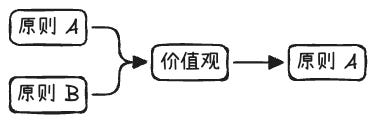 价值观相较于原则会没有那么容易出现改变,且在数量上面也会相较于原则来说没有那么多,但是这是我们底层的操作系统。如果把原则比做电脑上面的各种 APP,价值观就是不同的操作系统。在同时出现两个不同的 APP 的时候,操作系统就能够决定哪一个 APP 能够在这个操作系统下去运作。